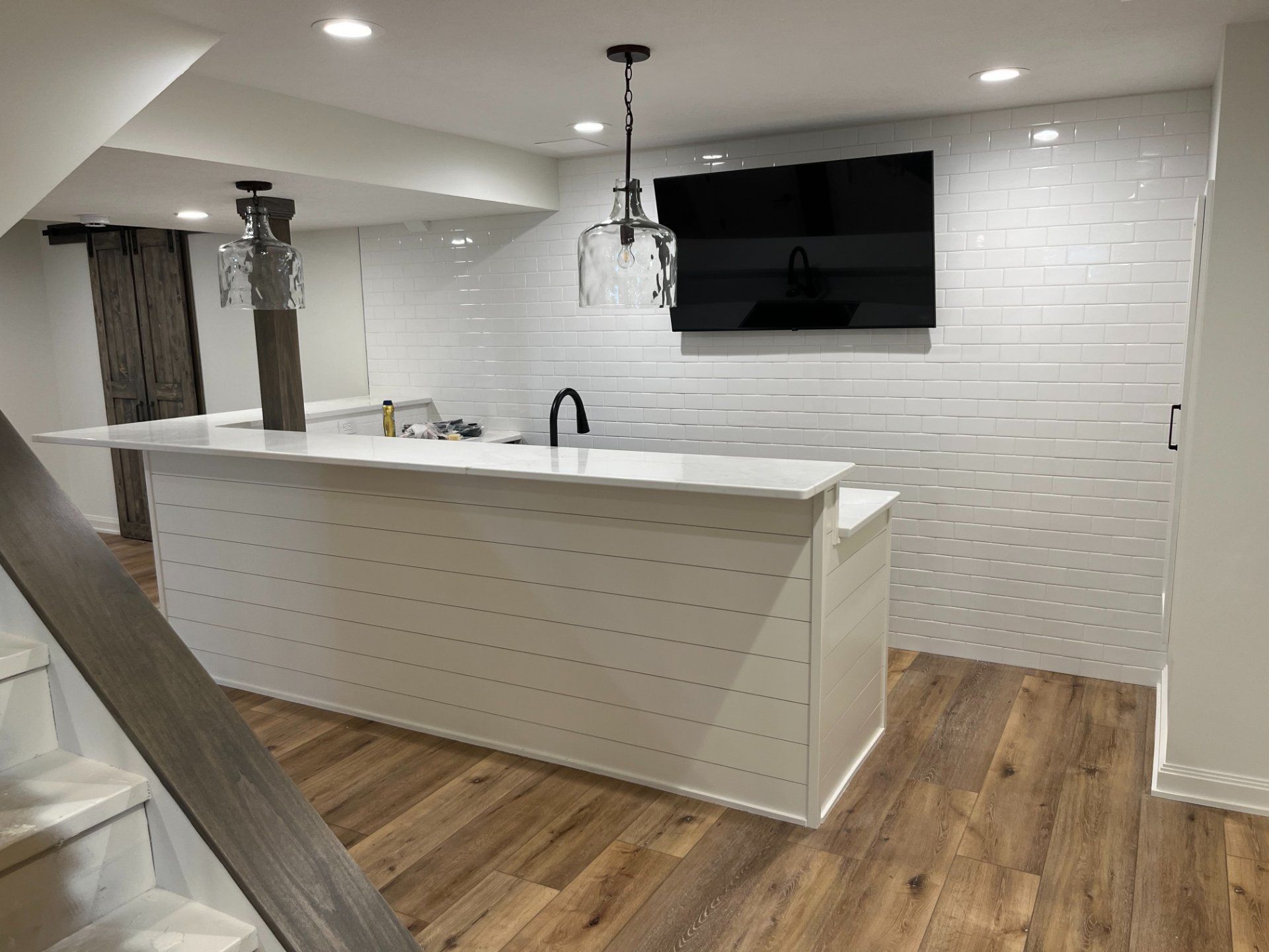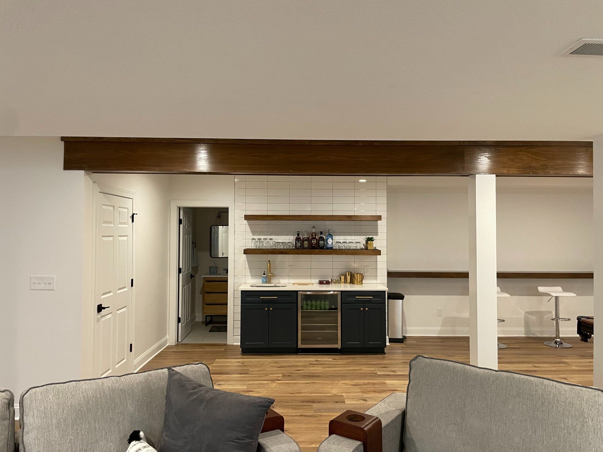 We create basements that are first floor worthy, with beautiful flooring, lighting and design elements. So whether you want to add a kid’s playroom, sports bar, fitness room, home office or large gathering space for entertaining, we can transform your basement.